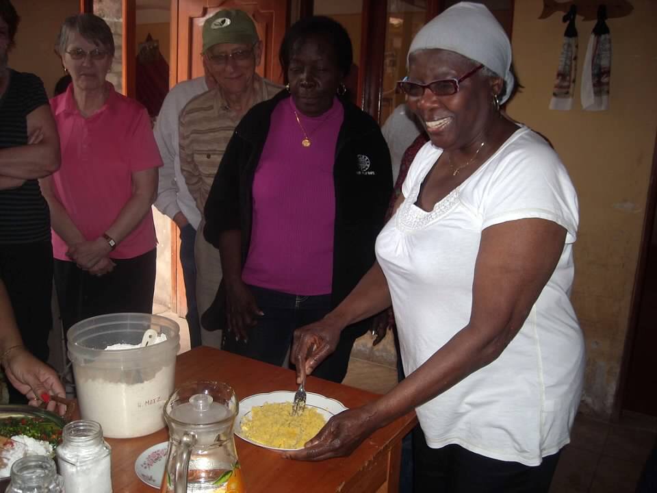 Here members of our group are participating in preparing the meal. Grains are very popular in their meals and here there was a mixture of corn, quinoa, flour I think something ending up more like mashed potatoes or cuscus. The thing that most, if not all, was not accustomed to, was Cuy (guinea pig).
